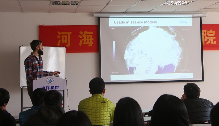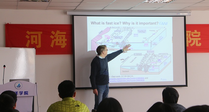 11月22日和23日,德国AWI极地与海洋研究所(Alfred Wegener Institute, Helmholtz Centre for Polar and Marine Research) Martin Losch研究员及其研究团队的Nils Hutter博士应色情直播平台 王雪竹博士的邀请访问色情直播平台 。23日上午Martin Losch研究员和Nils Hutter博士分别向全院师生作了题为“Modelling land-fast sea ice in the Arctic”和“Towards lead-resolving sea-ice models”的精彩学术报告。Martin Losch研究员是极地海洋过程和海洋-海冰数值模拟方面的资深专家,在极地海洋海冰动力学、海洋数值模式开发及应用、海洋数据同化等研究领域具有丰富的研究经验并取得了丰硕的研究成果。