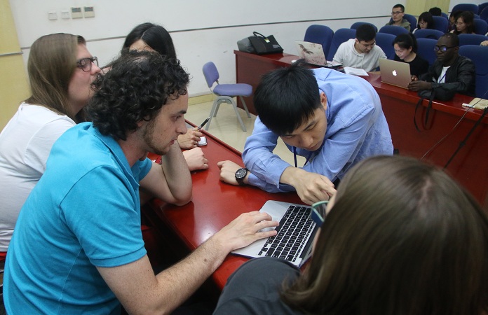 夏季讲习班伊始,组织委员会主席河海大学王召民教授及国际气象和大气科学联合会主席、英国南极局John Turner教授分别介绍了本次授课的背景及目的、教师简介、课程安排及教学方式等基本情况。21日-25日期间,讲课专家分别介绍了北极和南极海冰、大气、海洋的最新研究进展及一些国际重大项目,并安排了两次分组实践课程,训练大家数据处理和MITgcm模式操作能力的同时,也促进了国内外学生的学术交流。25日下午,王召民教授、John Turner教授与美国科罗拉多大学Mark Seefeldt教授针对课程成果进行了最后的总结和答疑,国内外学生热烈参与讨论,气氛十分活跃。