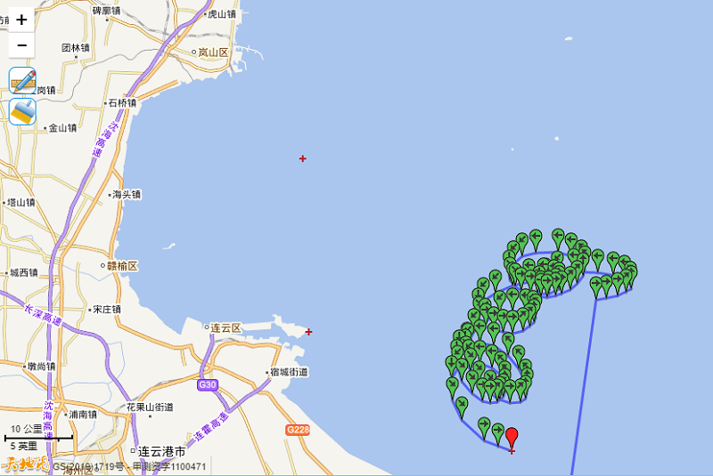 图8 连云港片区某一近海漂流浮标轨迹示意图(chinafloats.com.cn截图)