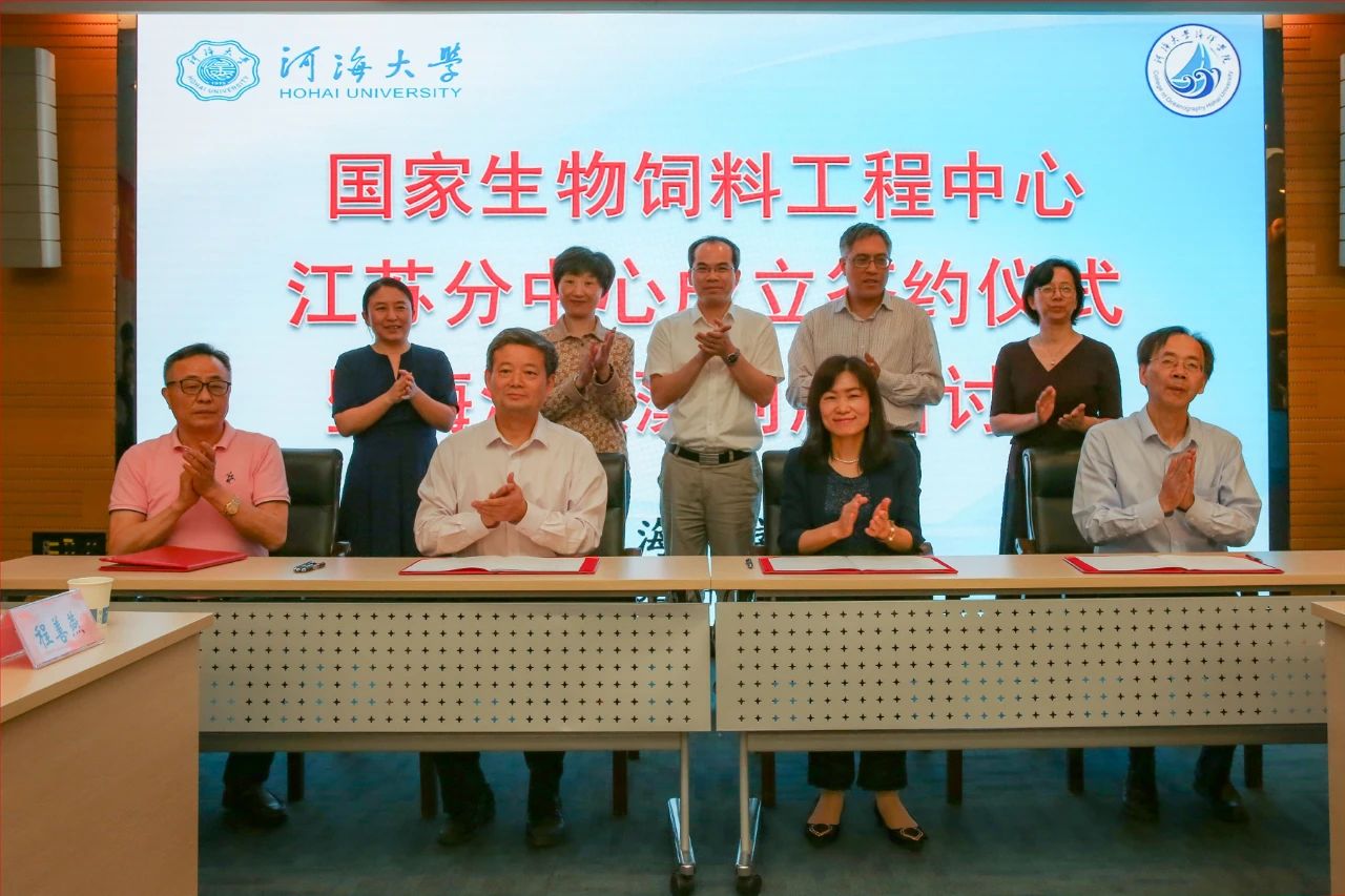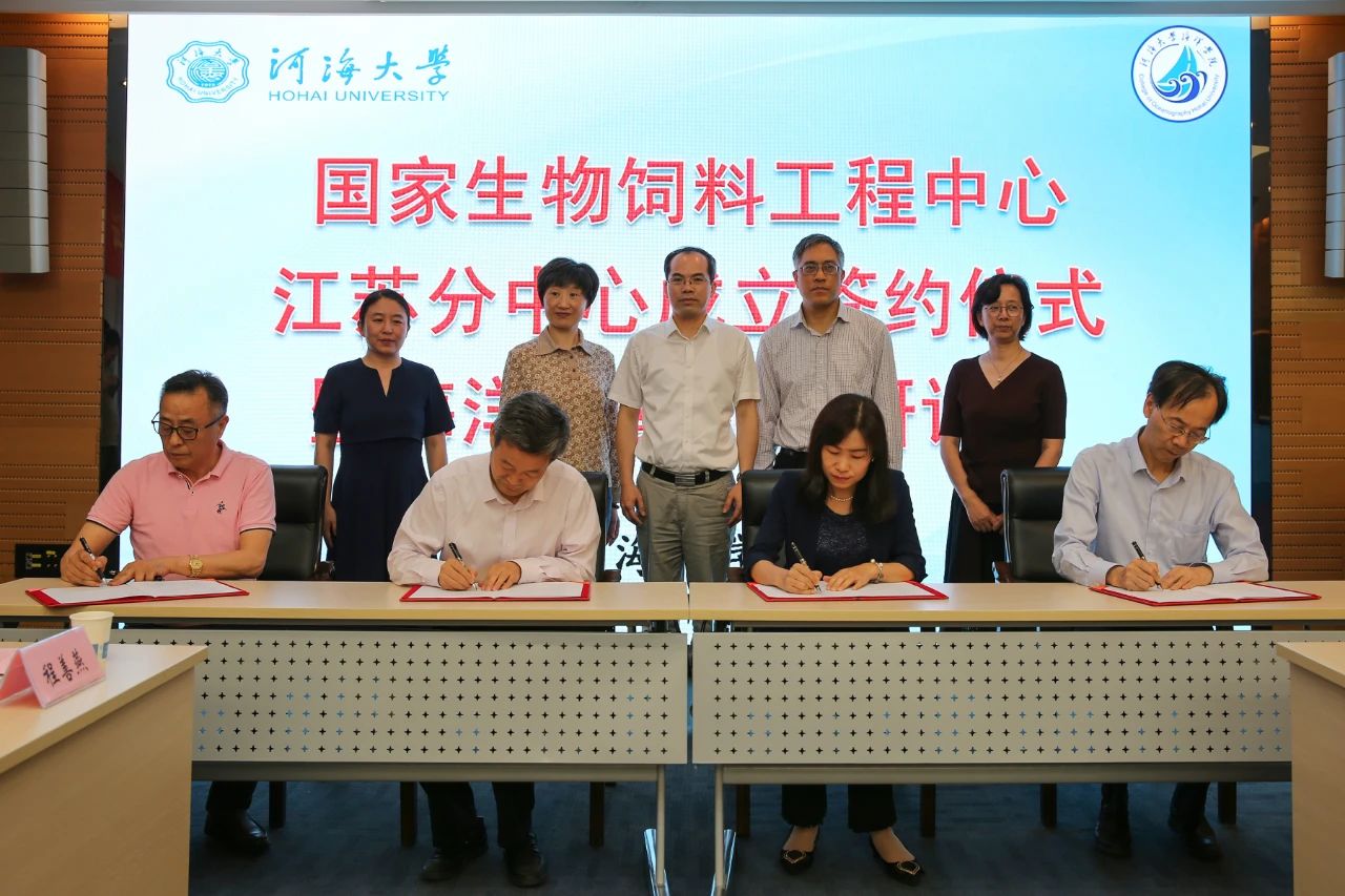 5月30日,关于合作建立生物饲料开发国家工程研究中心江苏分中心的战略合作框架协议签约仪式在河海大学闻天馆203会议室成功举办。河海大学郑金海副校长,江苏省科技厅科研机构处万发苗处长、江苏省农业农村厅渔业处姚蕾处长,江苏省农业农村厅对外合作交流中心史纪新副主任,南京国家农创园发展招商部经济运行科王青科长,生物饲料开发国家工程研究中心邓雪娟副主任,江苏省淡水水产研究所潘建林所长,江苏省农业科学院畜牧研究所闫俊书主任,江苏长寿集团南山生物科技股份有限公司顾平董事长等领导专家代表参加了签约仪式,仪式由河海大学科技处王锦国处长主持。