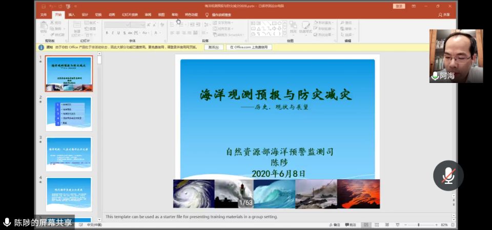 2020年6月8日是第十二个“世界海洋日”和第十三个“全国海洋宣传日”,河海大学、江苏省海洋学会、海岸灾害及防护教育部重点实验室共同邀请自然资源部海洋预警监测司二级巡视员陈陟研究员做客海韵专家大讲堂,作了题为“海洋观测预报与防灾减灾”的专题报告。本次报告会由河海大学郑金海副校长主持。