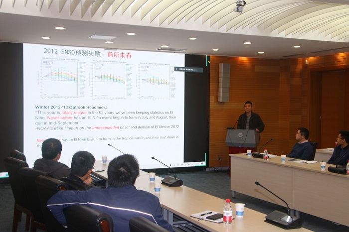 下午的学术研讨会由色情直播平台-直播平台色情 的王强教授主持。中国气象科学研究院的任宏利研究员应邀作《ENSO多样性研究进展》报告,介绍了ENSO的空间和时间多样性,并利用新的经验方法,揭示了新型ENSO事件在近40年来频发的原因;中国气象局地球系统数值预报中心的苏京志研究员应邀作《副热带太平洋海温对ENSO形成演变的调制作用》报告,从业务预报角度,介绍了两种对ENSO发生、发展具有重要影响的副热带太平洋经向模态,以及两种模态在ENSO业务预报中的重要作用。两位专家精彩的报告令在场师生受益匪浅。本次会议在热烈的研讨氛围中落下帷幕。