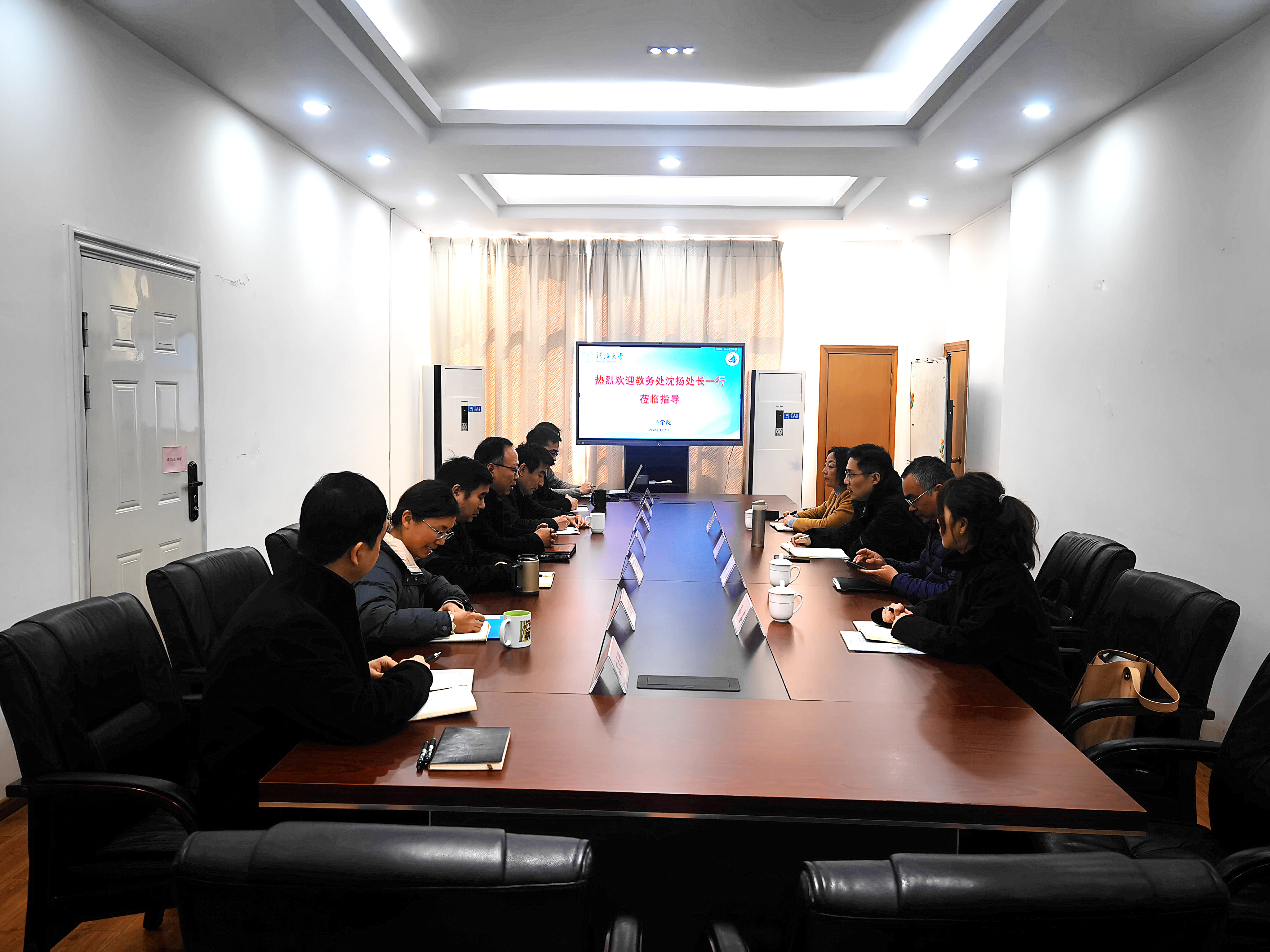 202232日上午,我校教务处处长沈扬副处长陈磊一行来到色情直播平台 ,就本科教学工作进行调研指导。学院党委书记胡忠华、副院长宋翔洲、副院长白学志、党委副书记吴昊、各系主任和学院教学秘书参加会议。本次会议主题为本科人才培养与教育教学改革,围绕一流专业建设、课程教材建设、实践教学改革和教师能力发展等方面进行了调研和交流。