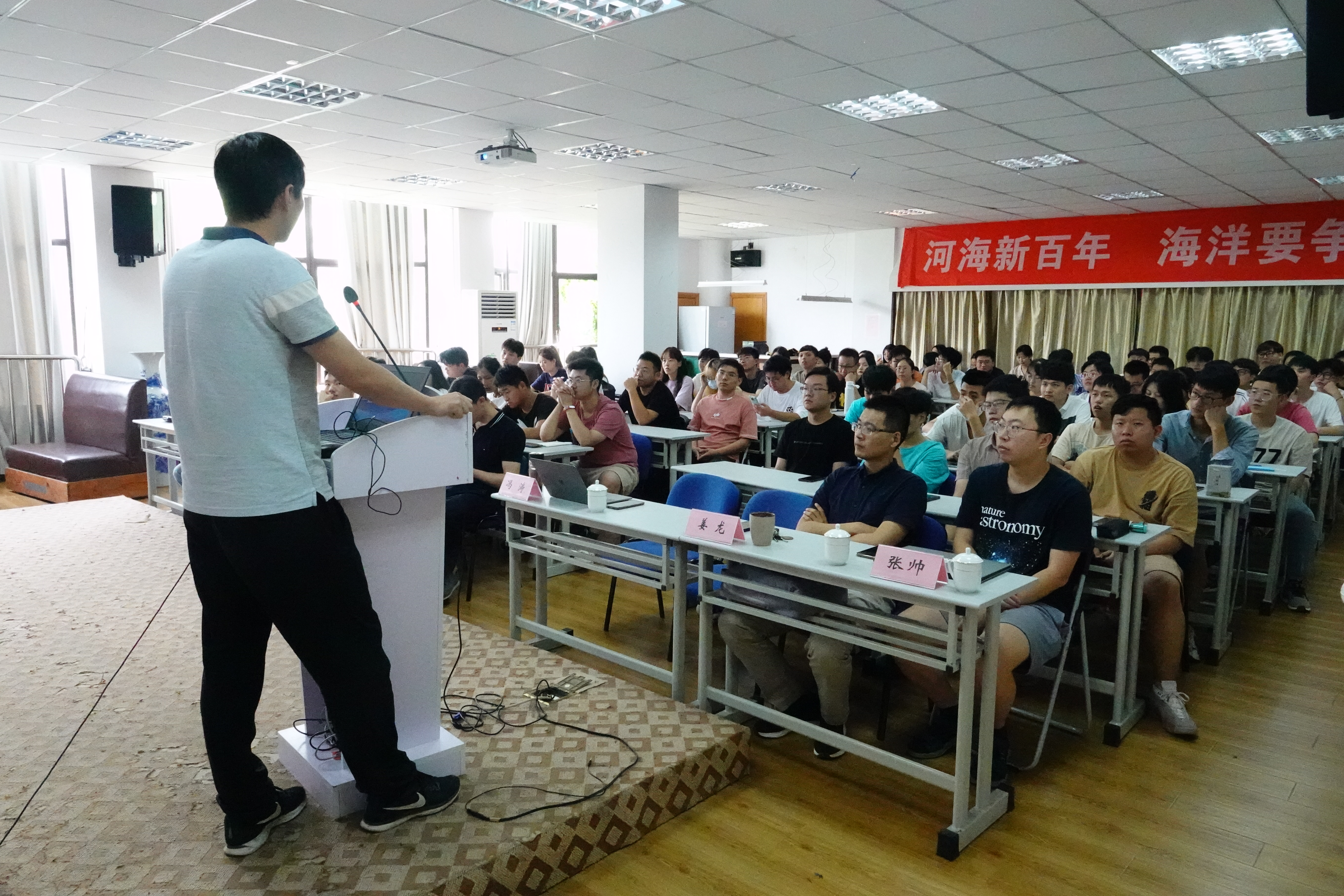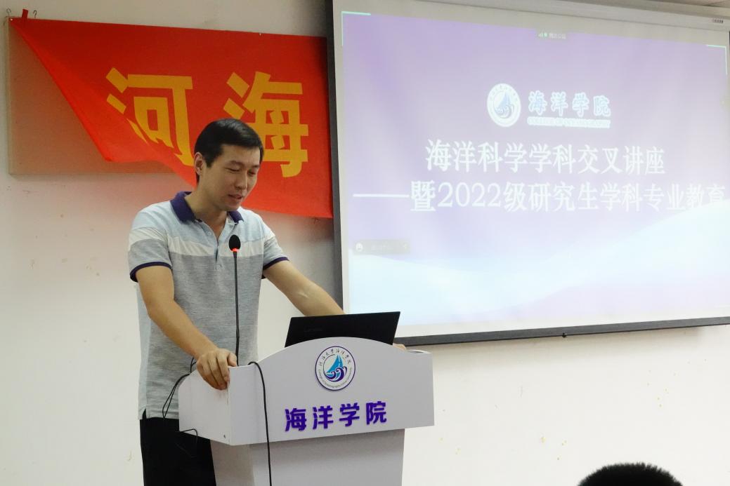 9月8日下午,色情直播平台 海洋科学学科交叉讲座——暨2022级研究生学科专业教育在电气馆507会议室如期举行。海洋动力与环境研究所曹海锦老师、姜龙老师,海洋地质研究所张帅老师、研究生辅导员刘彩英及2022级全体研究生新生参加此次会议,色情直播平台 部分教师、研究生及本科生在线上同步参与。本次讲座由色情直播平台 副院长冯涛主持。