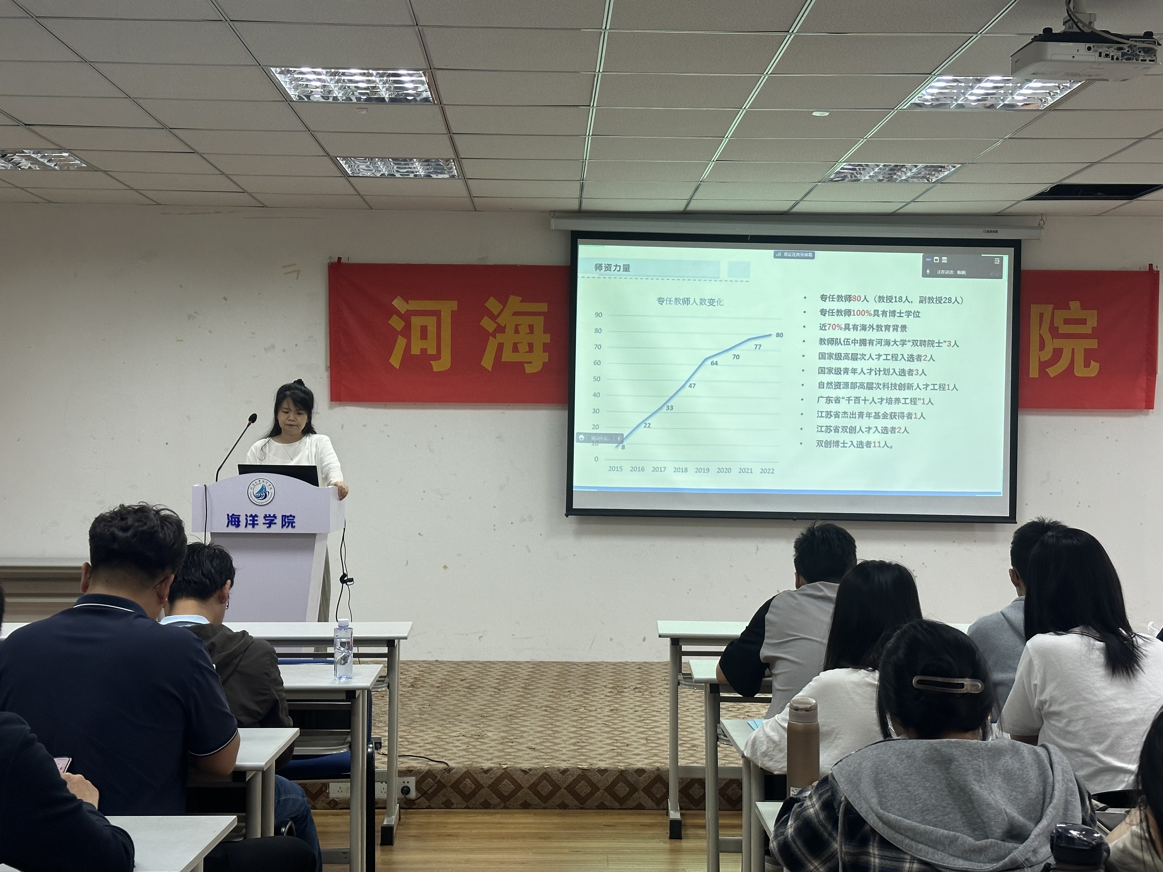 各研究所负责人分别向同学们介绍了学院整体情况,并对专业方向、师资队伍、科研实验平台、国际交流、研究生培养体系、研究生招生和培养情况以及研究生就业方向等几个方面进行了介绍。