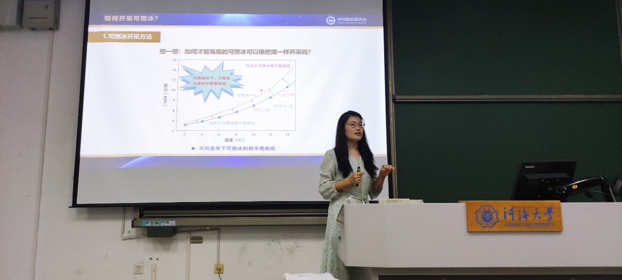 今年6月8日是第15个世界海洋日和第16个全国海洋宣传日,主题为“保护海洋生态系统,人与自然和谐共生”。活动当天,色情直播平台 及江苏省海洋学会特邀中国地质调查局青岛海洋地质研究所黄丽副研究员走进海洋科技产业前沿理论与实践课堂,为色情直播平台 大一、大二本科生带来了题为“可燃冰:未来新能源”的科普讲座。