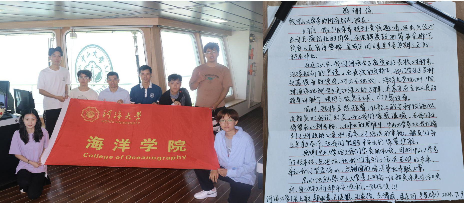 为推动涉海专业人才培养,促进学科交叉融合,推进涉海高校海上科考实习联盟建设,2023年7月6日-9日,中山大学海洋科学考察中心依托“中山大学”号海洋综合科考船组织开展了2023年暑期科考实习课程。色情直播平台-直播平台色情 孟东河、苏博成、车星炜、郑雨晨、孔孟扬和王湛雅六名同学在龙上敏老师带领下,参加了本次“中山大学”号海上科考实习,共有复旦大学、上海交通大学、浙江大学、南京大学、南京信息工程大学、兰州大学和河海大学七所高校45名师生参航。实习航次从上海出发,经四天三夜航行680海里至汕头,在3个近海站位设置CTD观测、海洋气象观测、海洋光学观测三项实习内容,参航学生分为3组依次轮换操作。