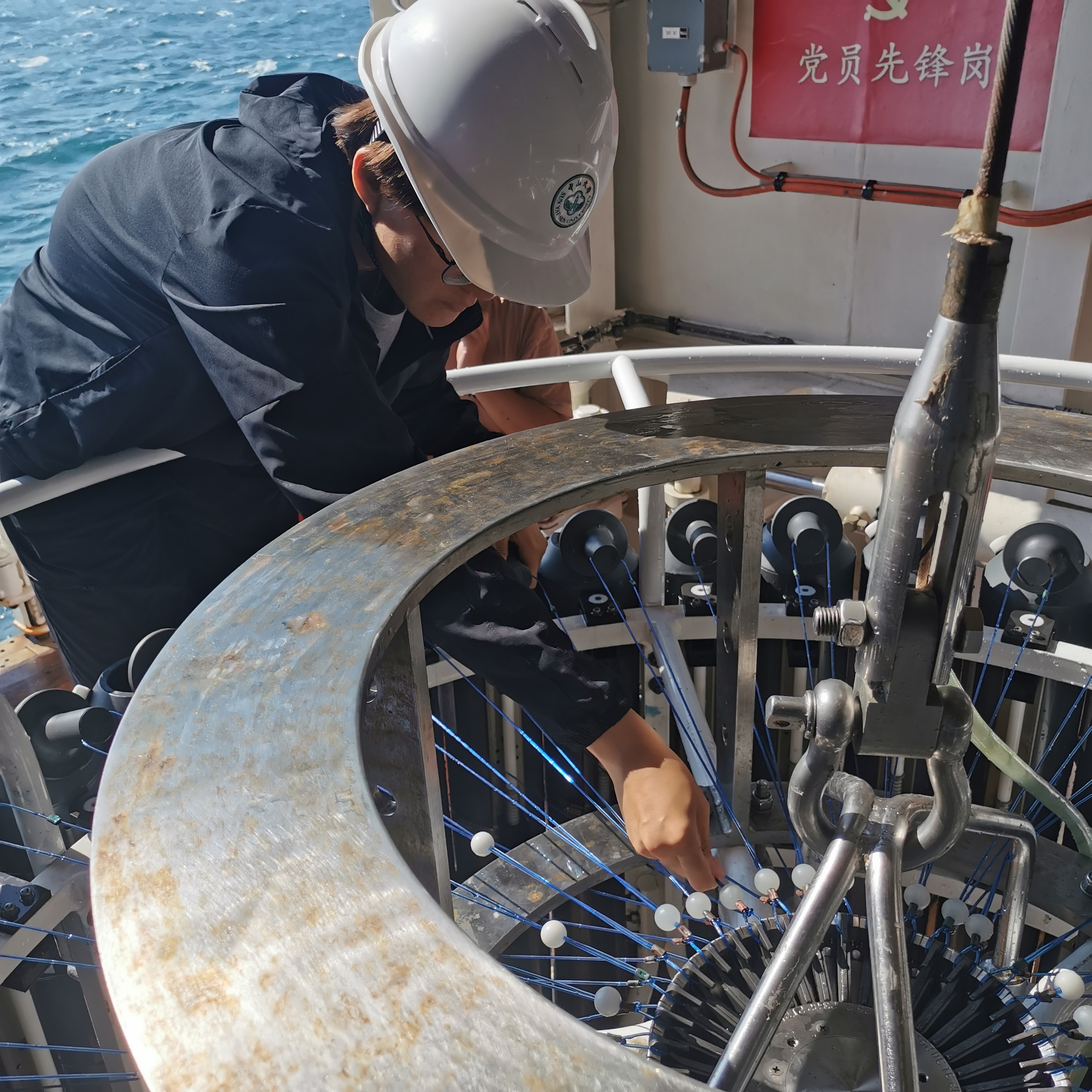 色情直播平台 同学下放海洋水色观测圆盘并进行CTD挂瓶操作