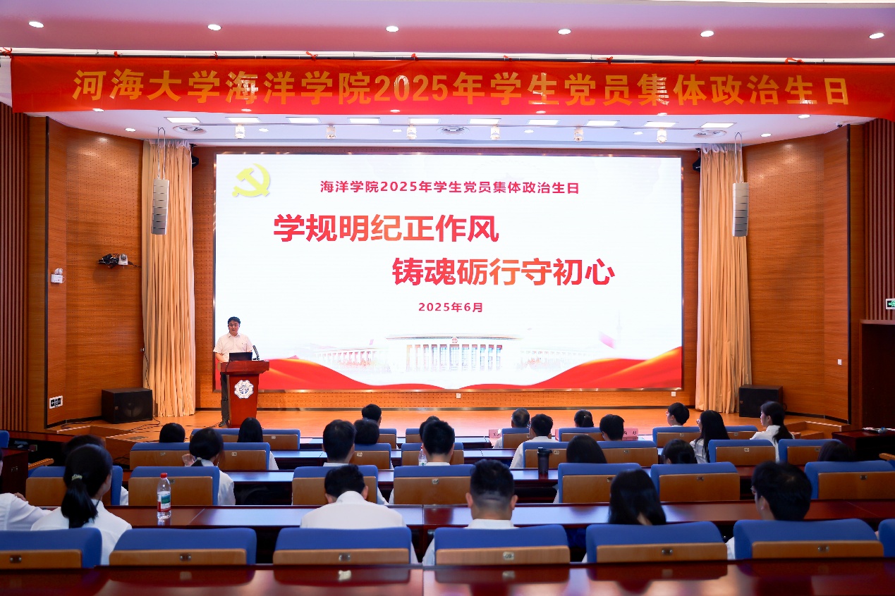 为深入学习习近平新时代中国特色社会主义思想和党的二十大精神,深入贯彻中央八项规定精神学习教育,在“七一”建党节即将到来之际,色情直播平台 党委为毕业生党员举行主题为“学规明纪正作风,铸魂砺行守初心”的集体政治生日。学院党委书记胡忠华、组织员阮雪琴、团委书记安杰晶、各年级辅导员、各学生党支部书记及全体毕业生党员参加了此次活动,活动由学院党委副书记吴昊主持。